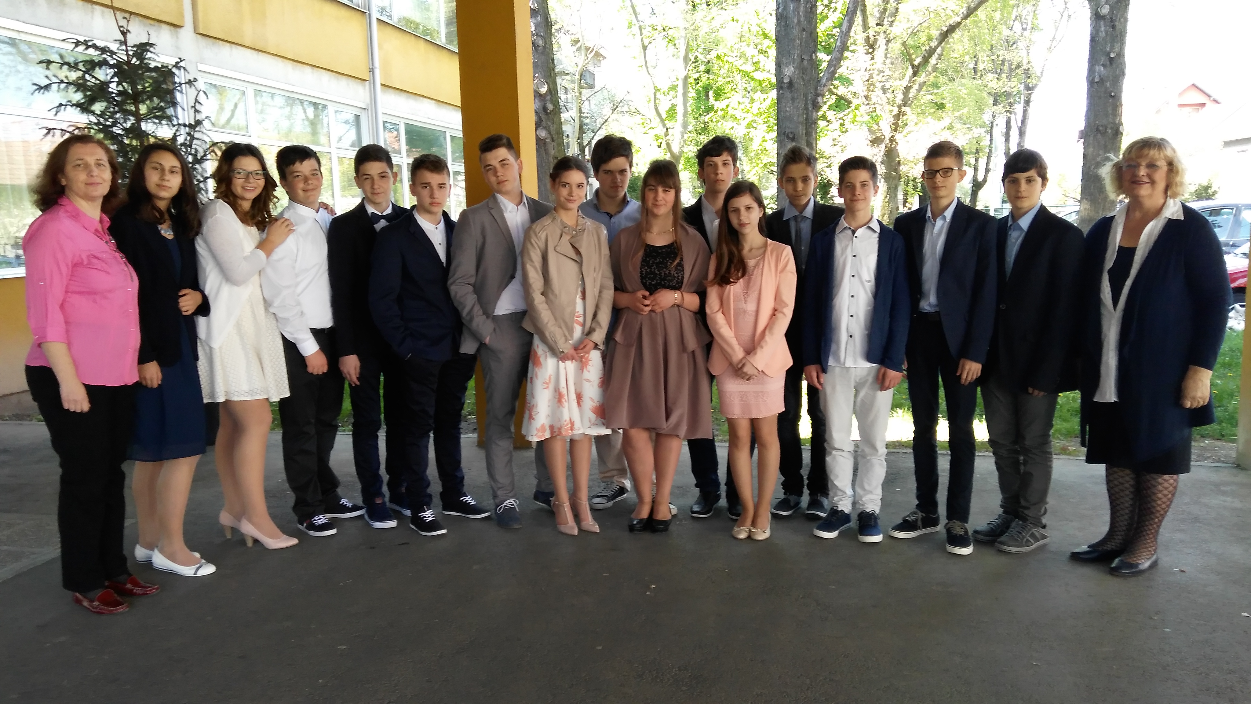 Učenice i učenici 8.a/b/c razreda naše škole svečano odjeveni,