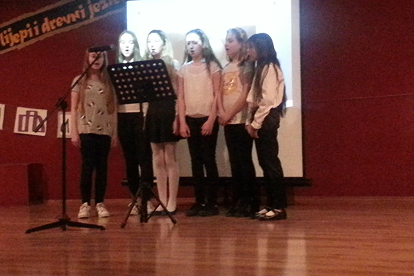 Dakle, 4. travnja, 2017.godine u 18 sati, učenici viših razreda su zajedno sa svojim mentoricama prof. Papić, prof. Perdija te prof. Vukadinović, jednu običnu večer pretvorili u večer za pamćenje, kako se čulo iz publike. Djeca su recitirala, glumila, pjevala pa čak i repala i to sve na ovom našem prekrasnom hrvatskom jeziku. Bilo je izvedbi koje su nas ganule do suza, a bilo je i onih koje su nas poprilično nasmijale...