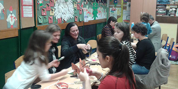 I ovog prosinca učenici 3. a i 3. b razreda veselo su ušli u najljepši mjesec u godini. Na božićnoj radionici, zajedno s roditeljima i učiteljicama, izrađivali su ukrase i predmete koje će izložiti na Božićnom sajmu. U radnom i veselom raspoloženju izradili su magnete, sobove, teglice i posadili pšenicu. |