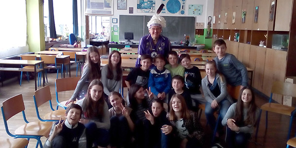 Povodom Svjetskog dana pripovijedanja u mjesecu ožujku u našoj školi je organizirano predavanje i pripovijedanje američkog pripovjedača Perrya Grounda, rodom Indijanca iz plemena Onondaga. Pripovijedanje priče je organizirano na satovima prirode kod učiteljice Ive Juršič Uravić te su se pridružili i ostali razredi petog do osmog razreda u sklopu nastave engleskog jezika. Storytelling (pričanje priča) je vrijedan alat u obrazovnom sustavu te razvija kod učenika kritično i logično razmišljanje, kreativnost te emocionalnu inteligenciju. Druženje je proteklo zanimljivo te smo imali priliku učiti o poštivanju i toleranciji te važnosti suradnje. |