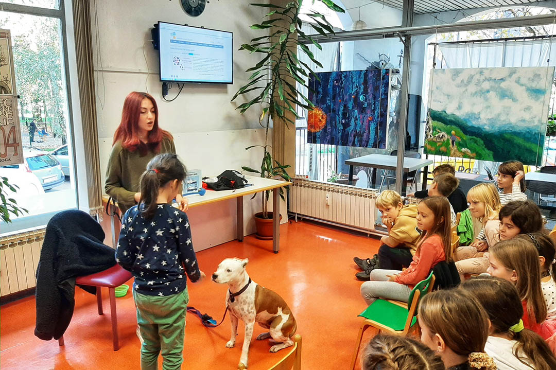 su imali priliku družiti se s Gili, glavnom junakinjom slikovnice "Mi nismo sami" koju je napisala Alma Pongrašić. Gili je udomljen pas i zajedno sa svojom vlasnicom i autoricom ove slikovnice poručuje svima nama da sva bića na Zemlji imaju pravo na dostojanstven život. Dio sredstava od prodaje ove slikovnice donira se u vidu lijekova i hrane azilima za životinje diljem Hrvatske. Ako se pitate zašto su se učenici svečano obukli i nosili kravate i leptir mašne to je zato što su 18. listopada prigodno obilježili i Dan kravate.