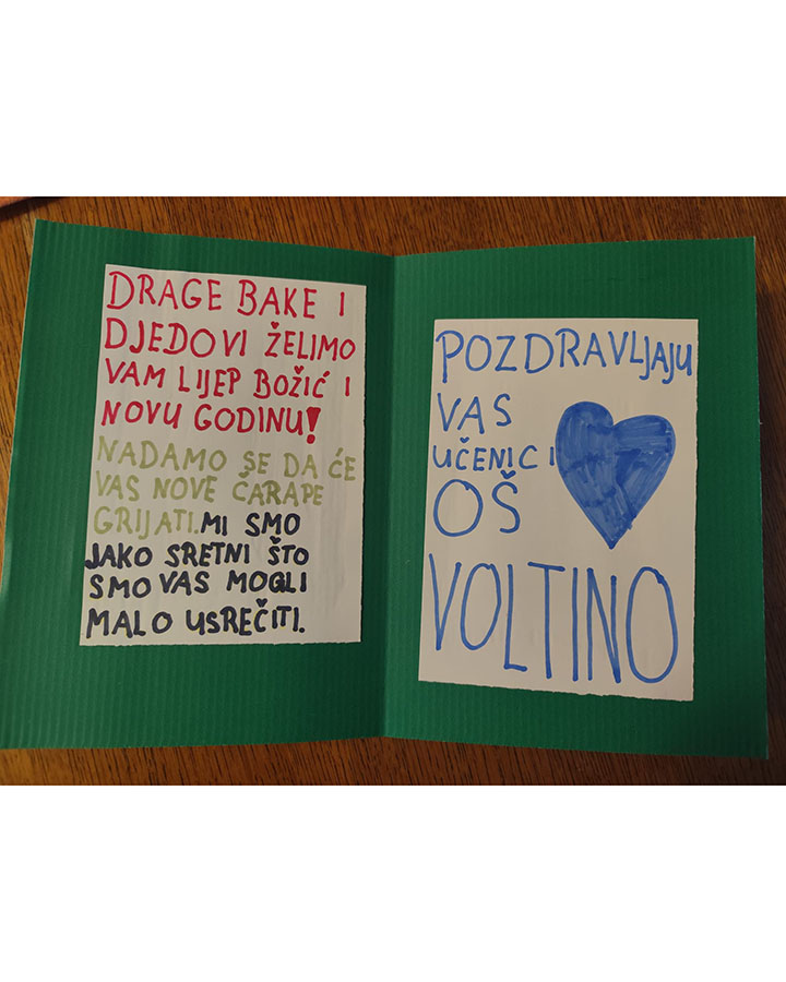 Školski ormarić dobrote učenici OŠ Voltino napunili su novim čarapama za naše stare ili nemoćne sugrađane. Vrijedne ruke učenika upakirale su te male znakove pažnje i u četvrtak 18.12. malim poklonima razveselili korisnike Doma za starije i nemoćne Rosenberg.