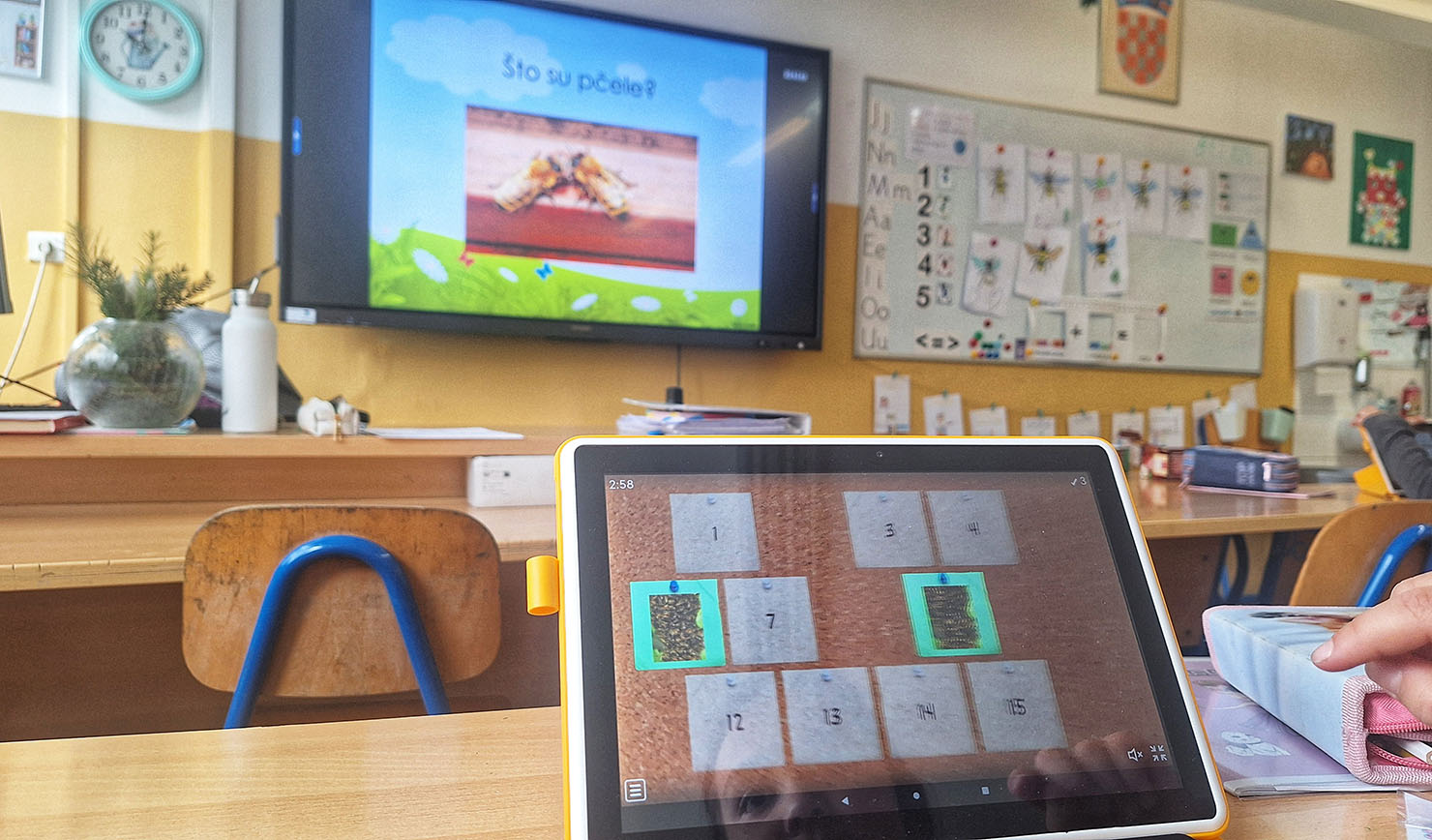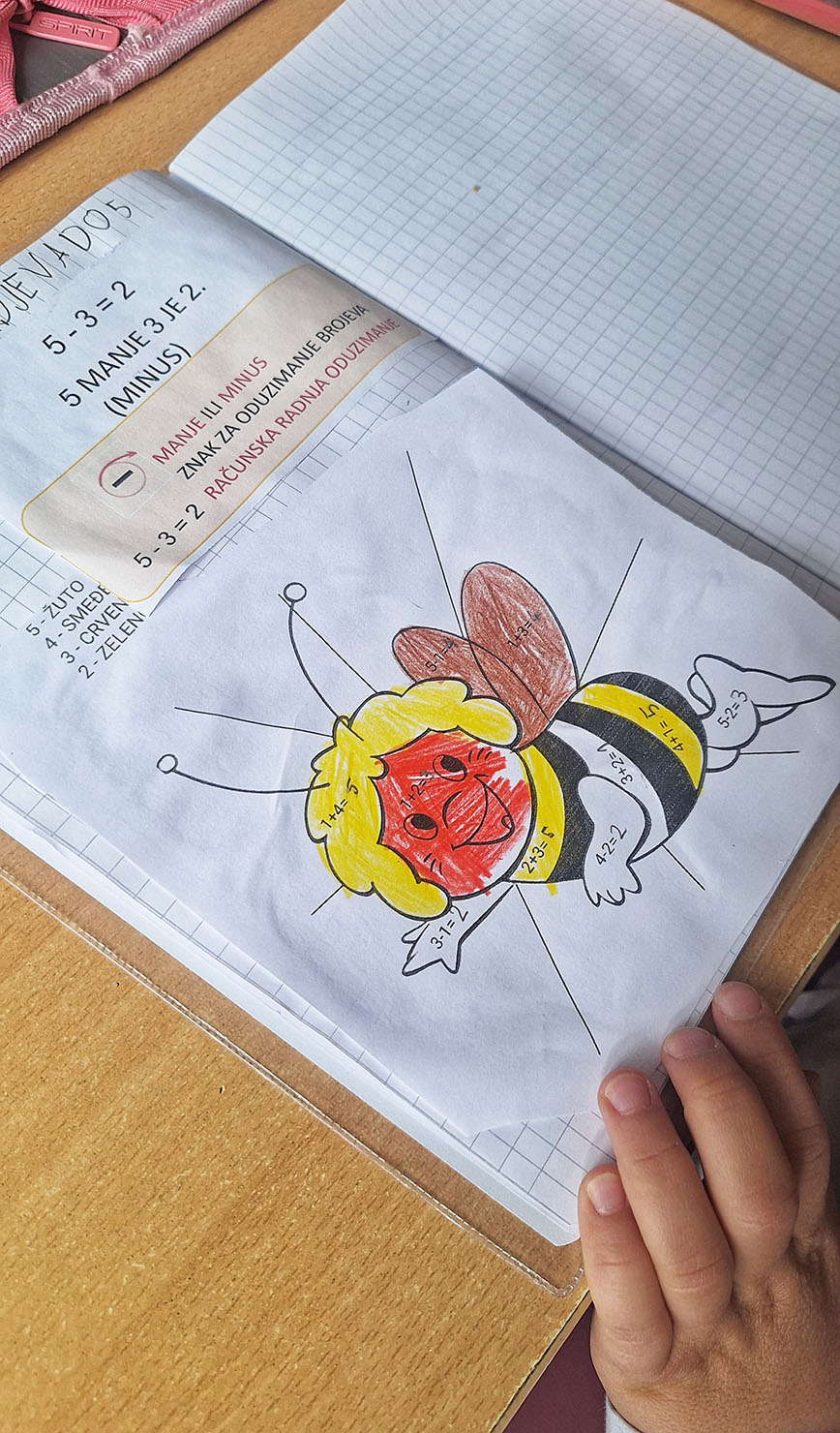u ponedjeljak obilježen Školski medni dan. Cijeli dan prvašići su posvetili tome da nešto nauče o važnosti i značaju pčelarstva. U tome im je pomogla i slikovnica naziva Pčelica Jelica i medo Edo. Učenici su o medu i pčelama učili i kroz razne igre, poput igre pamćenja na tabletima, a pčelica je poslužila i kao motiv za zbrajanje i oduzimanje do 5 u matematičkim bojankama.