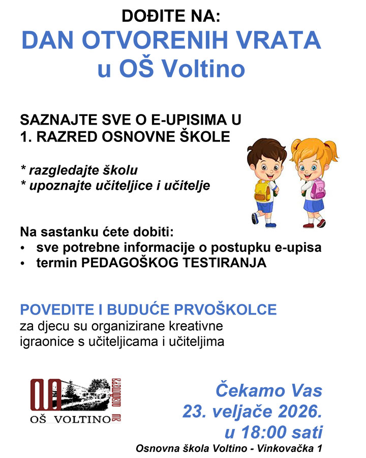 Saznat ćete sve o e-upisima u prvi razred, razgledati školu, upoznati učitelje i pitati sve što vas zanima.