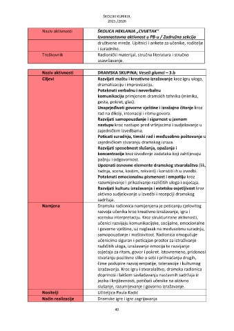 Naziv aktivnosti DRAMSKA SKUPINA; Veseli glumci – 3.b